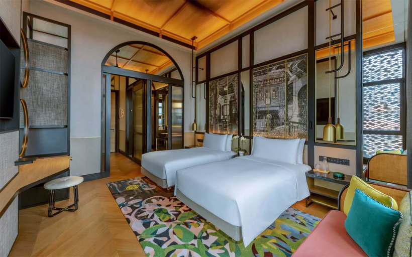 Its 445 guest rooms are furnished in calming sand tones with terracotta accents, and boast floor-to-ceiling windows with a breezy view. The hotel’s suites particularly feel like a home away from home, with their residential-style floor plan and plentiful seating options. All room types enjoy minibars stocked with favourite local snacks that celebrate the Lion City.