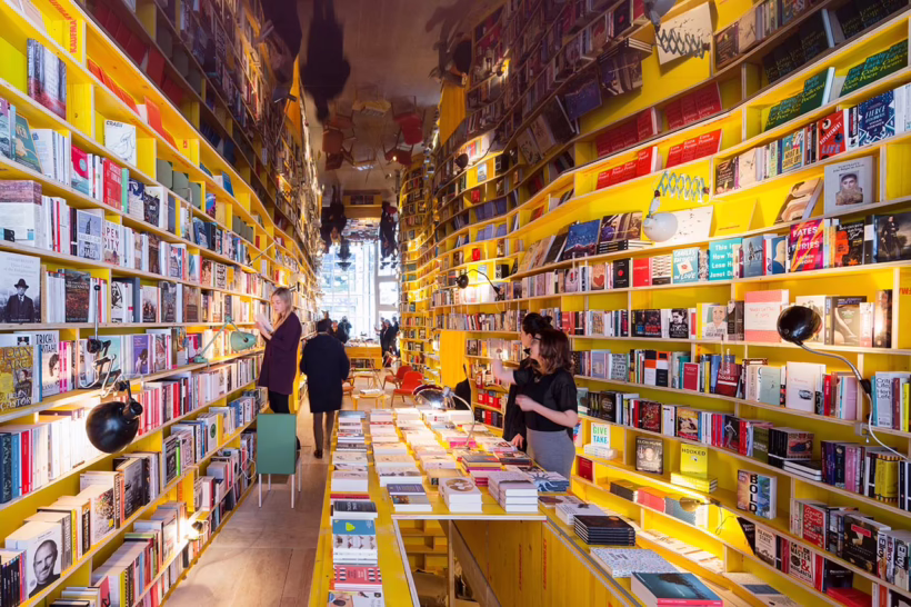 Nestled amid the bustling vintage markets and street food stalls of Brick Lane is Libreria, a sliver of a bookstore that looks larger than it is, thanks to its mirrored surfaces and undulating, nook-filled walls. The space, designed by Spanish architects SelgasCano, evokes the labyrinths of Argentine writer Jorge Luis Borges, whose short story “The Library of Babel” inspired the bookshop.