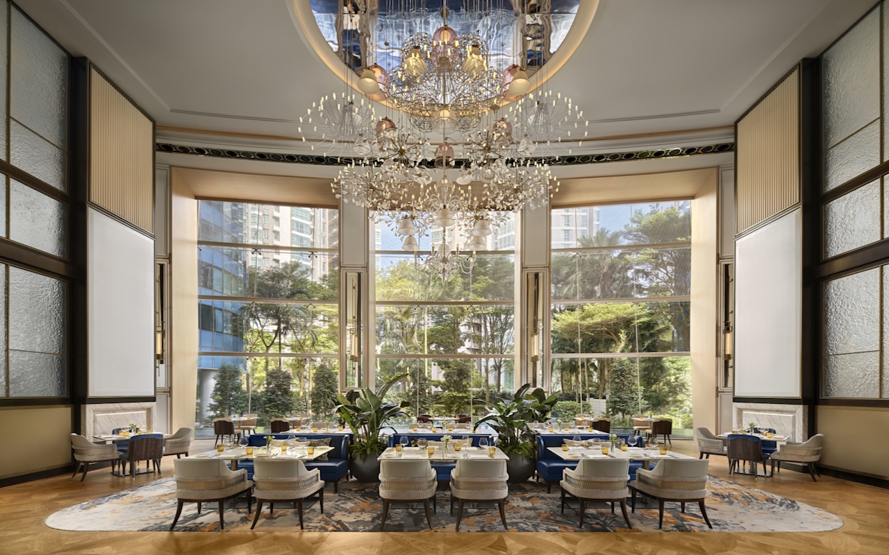 Natural light streams through the towering windows, lending the Italian restaurant a sparkling glasshouse elegance. It’s here where Chef de Cuisine Angelo Sergio celebrates the cornerstones of heartfelt Italian cooking from 11 regions of the country. Start with the fresh, wonderful Carpaccio di Gamberi featuring sweet Mazara red prawn brightened with raspberry and lemon gel. For the pasta course, get the Tagliatelle Atavi e Porcini, made with a special Hickory-smoked Atavi tagliatelle exclusive to the restaurant. While the Tonno Scottato – lava stone-seared yellow fin tuna – is deliciously succulent, the real showstopper has to be the Bistecca alla Fiorentina. Just a beautifully grilled Angus beef T-bone served with nothing but pepper berry sea salt, red wine jus and cannellini beans. On Sundays, brunch is a lively affair with a band, freeflowing champagne and a mozzarella bar. End the week in style with freshly made gelato from a cart that travels from table to table.